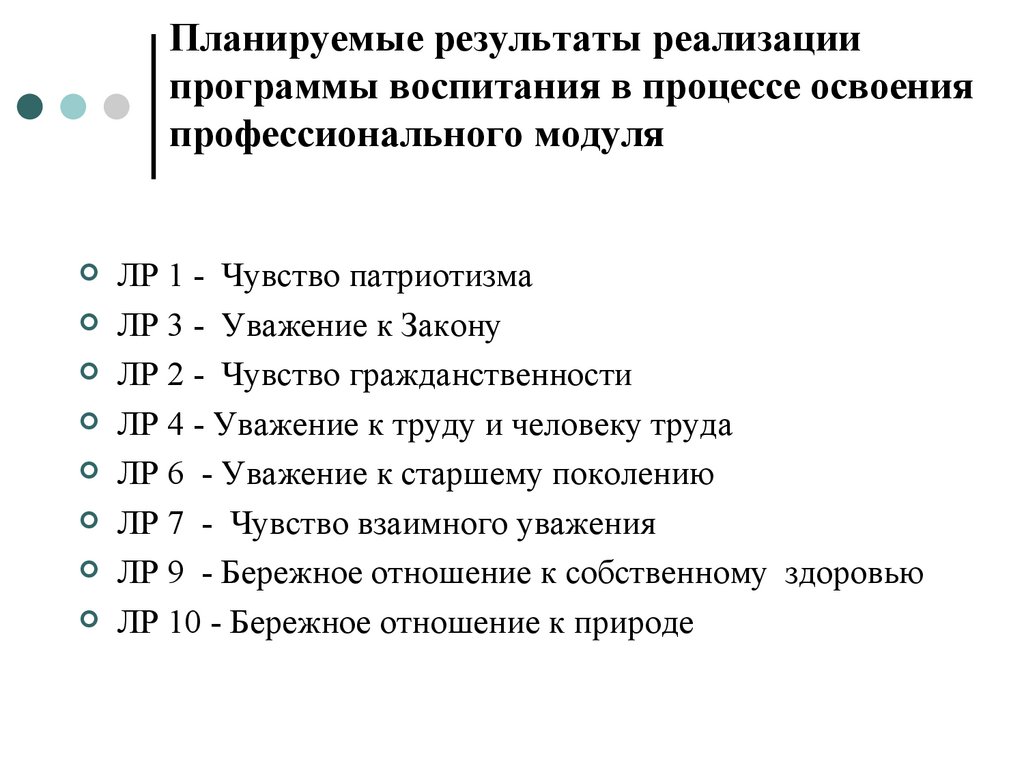 ЛР 1 - Чувство патриотизмаЛР 3 - Уважение к Закону