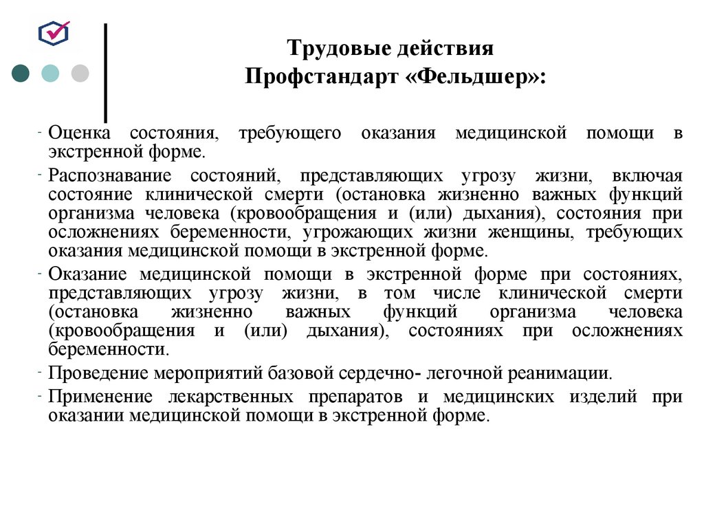 5. Трудовые действия Профстандарт «Фельдшер»:
