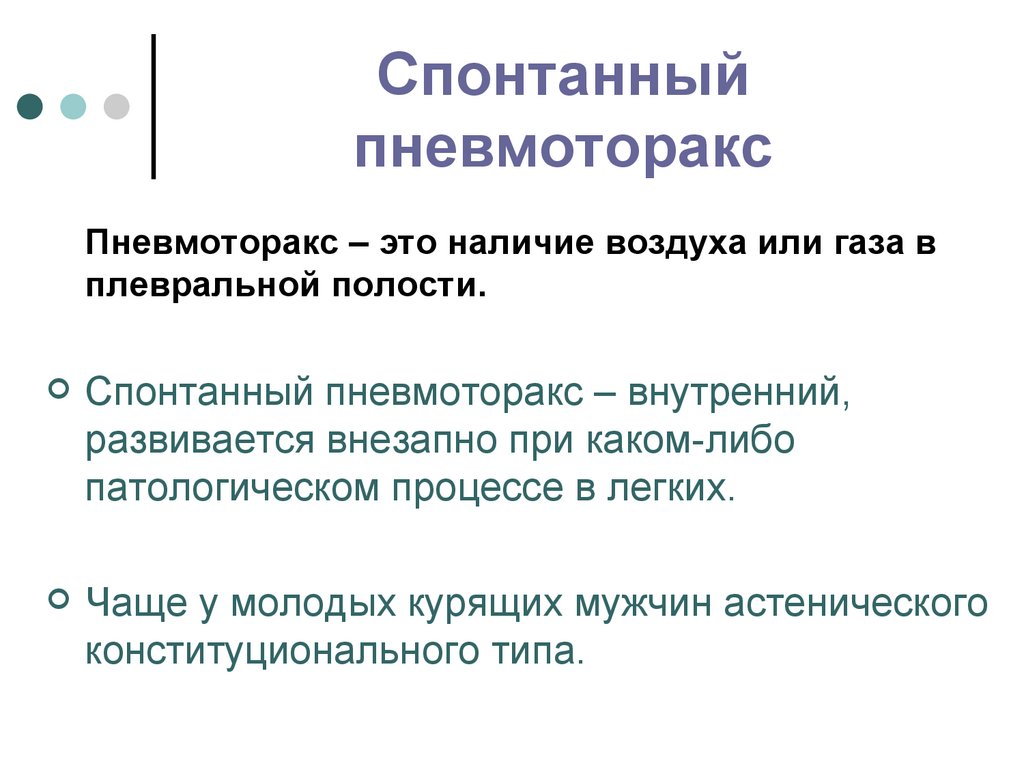 Пневмоторакс – это наличие воздуха или газа вплевральной полости.