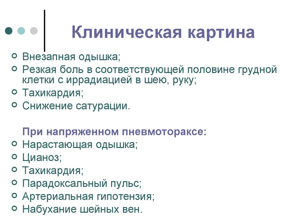 Внезапная одышка;Резкая боль в соответствующей половине грудной
