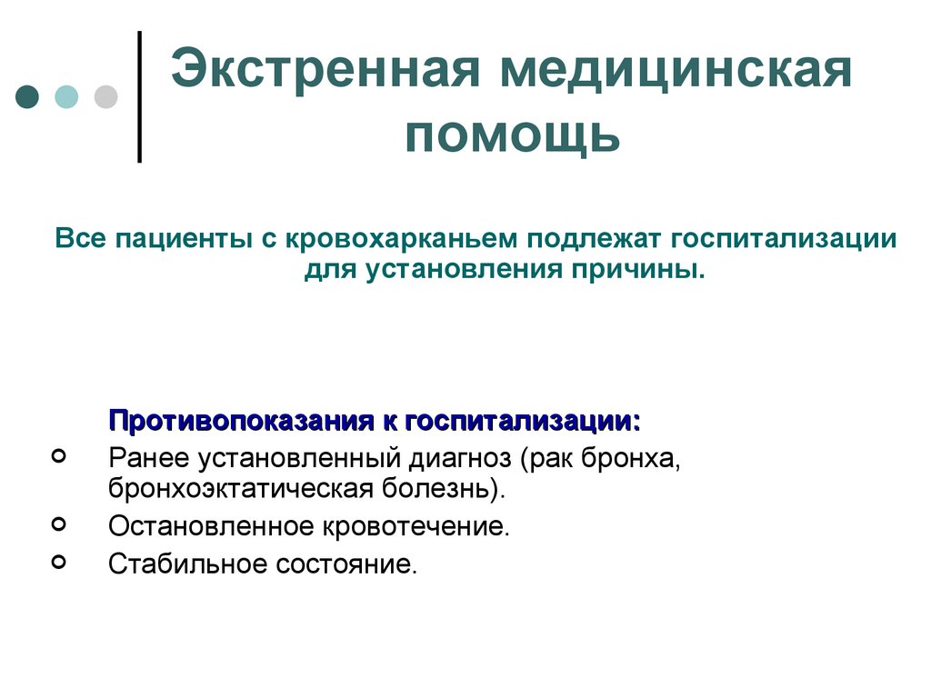 Все пациенты с кровохарканьем подлежат госпитализациидля установления причины.