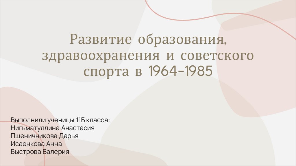 1. Развитие образования, здравоохранения и советского спорта в 1964-1985