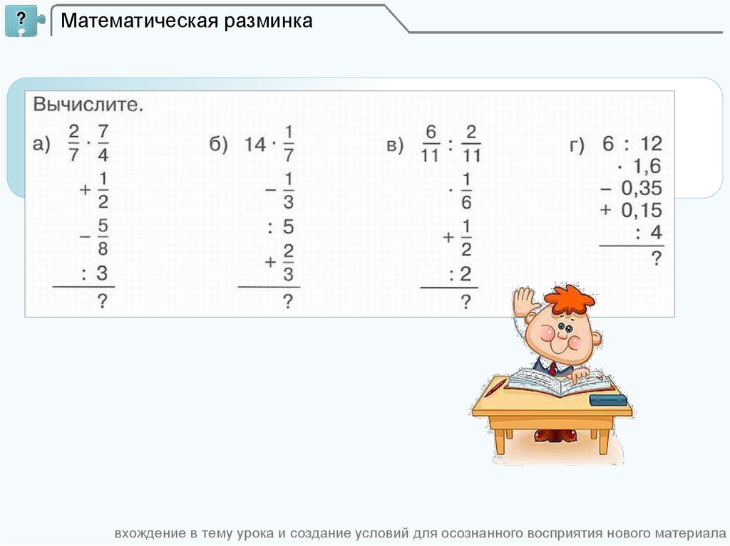 вхождение в тему урока и создание условий для осознанного восприятия нового материала