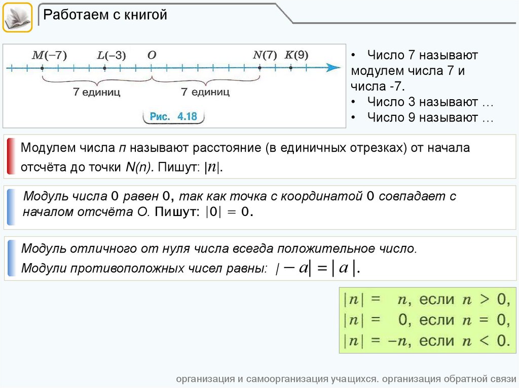 Модулем числа п называют расстояние (в единичных отрезках) от начала
