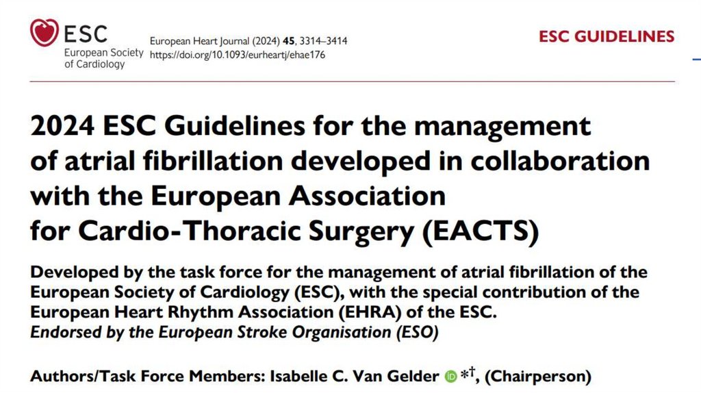 Van Gelder IC, et al. 2024 ESC Guidelines for the management of atrial fibrillation developed in collaboration with the European Association for Cardio-Thoracic Surgery (EACTS). Eur Heart J. 2024 Aug 30:ehae176
