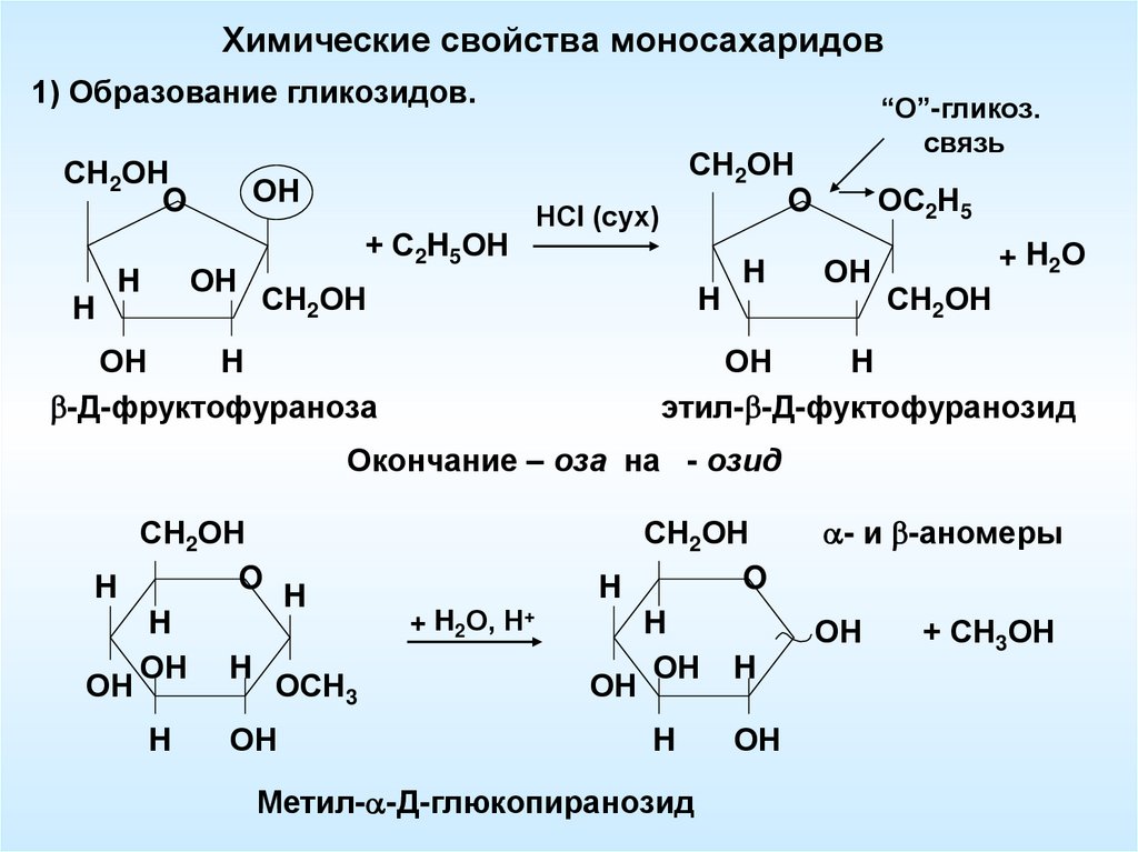 Химические свойства моносахаридов1) Образование гликозидов.