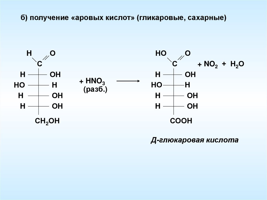 б) получение «аровых кислот» (гликаровые, сахарные)О