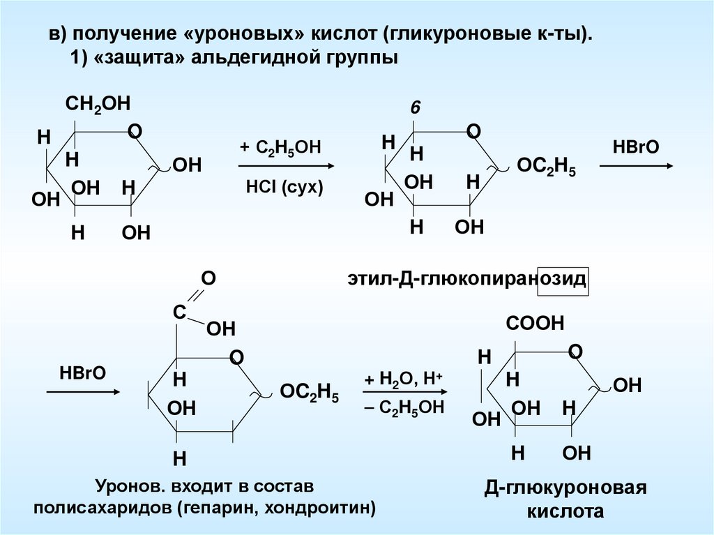 в) получение «уроновых» кислот (гликуроновые к-ты).1) «защита» альдегидной группы