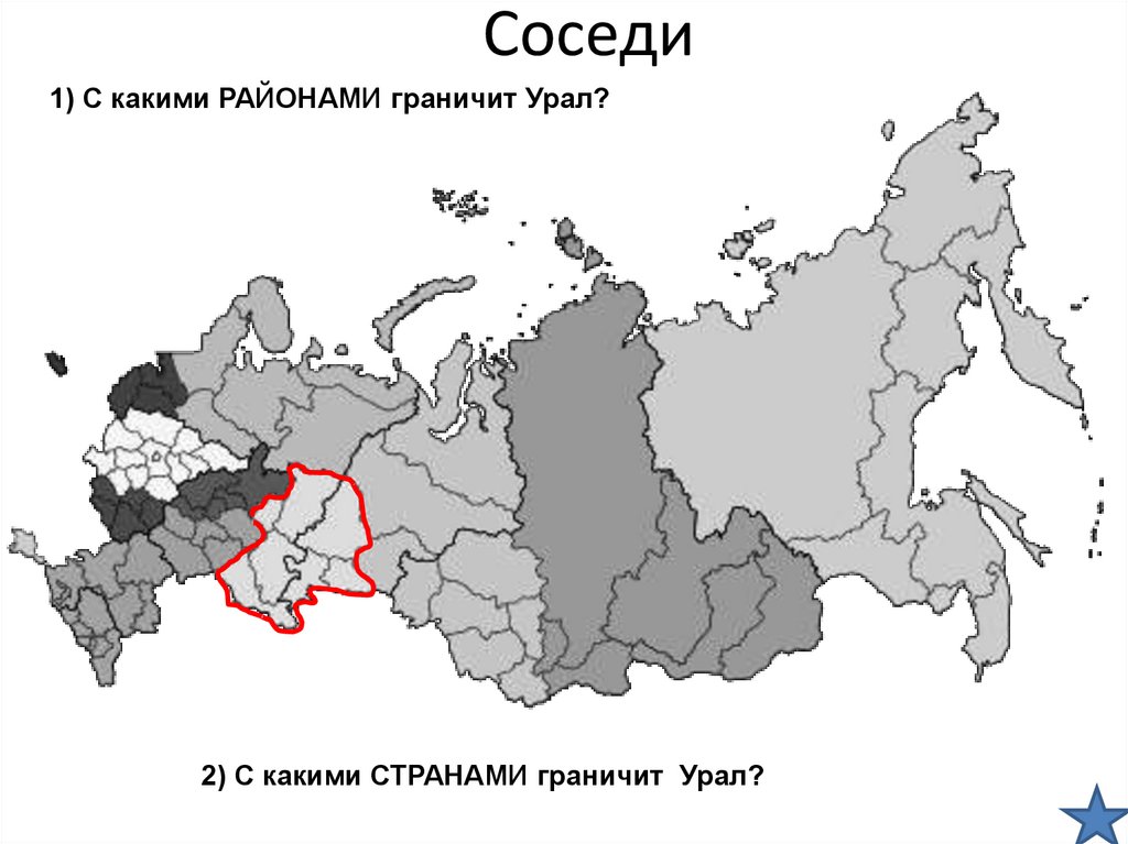 Соседи1) С какими РАЙОНАМИ граничит Урал?