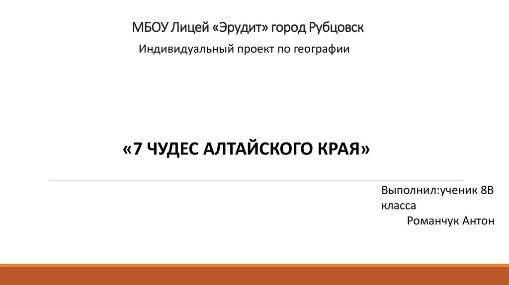 Индивидуальный проект по географии«7 ЧУДЕС АЛТАЙСКОГО КРАЯ»