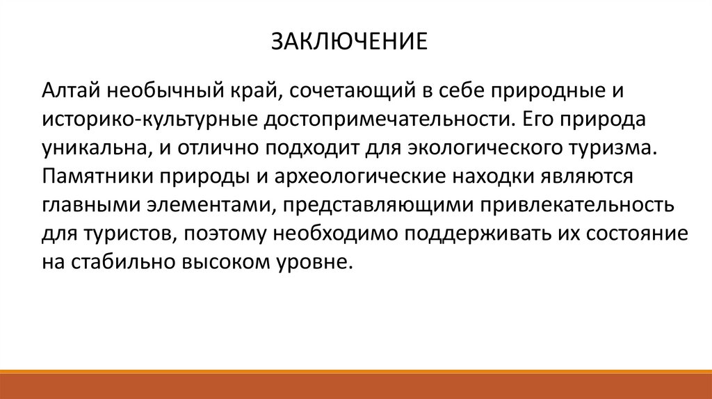 ЗАКЛЮЧЕНИЕАлтай необычный край, сочетающий в себе природные и