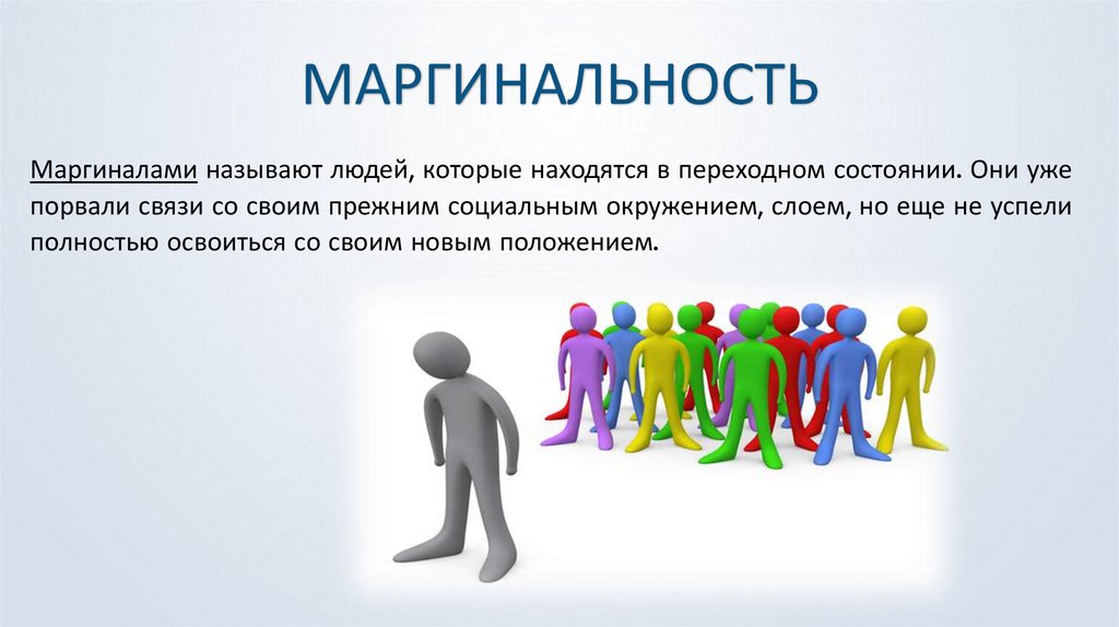 МАРГИНАЛЬНОСТЬМаргиналами называют людей, которые находятся в переходном состоянии. Они уже