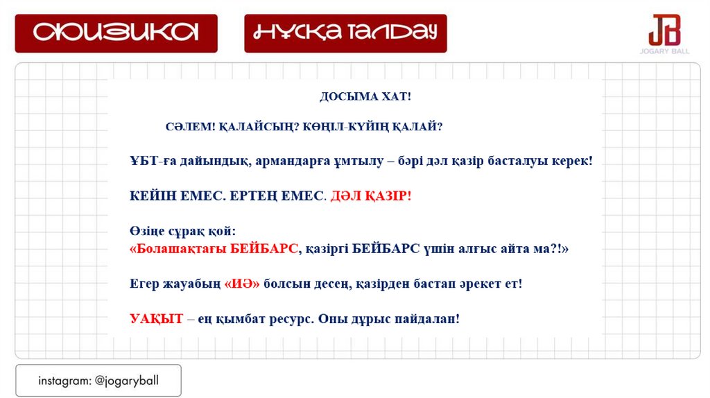 ҰБТ-ға дайындық, армандарға ұмтылу - бәрі дәл қазір басталуы керек! кейін емес. ертеңемес. дәл қазір!