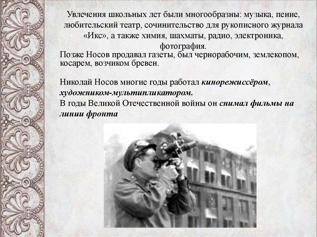 Николай Носов многие годы работал кинорежиссёром,