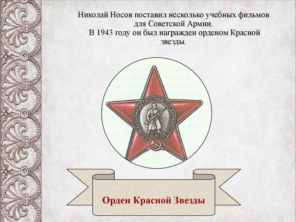 Николай Носов поставил несколько учебных фильмовдля Советской Армии.