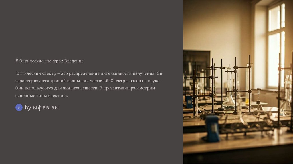 # Оптические спектры: ВведениеОптический спектр – это распределение интенсивности излучения. Он
