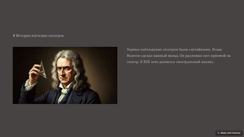 # История изучения спектровПервые наблюдения спектров были случайными. Исаак