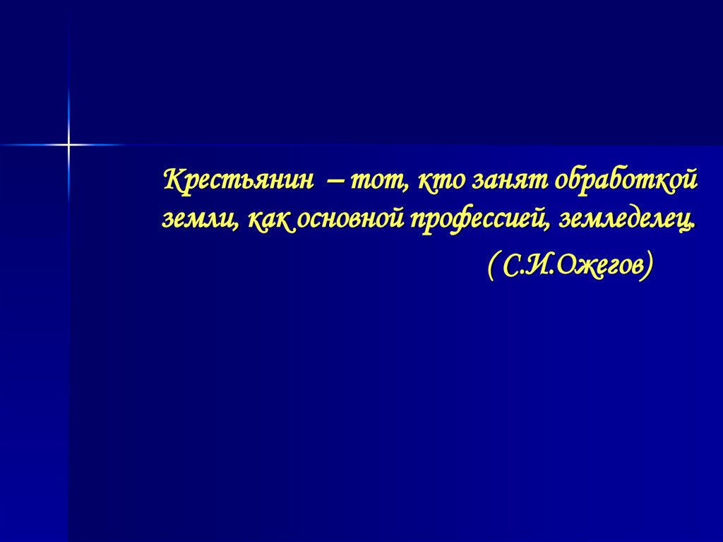 Крестьянин – тот, кто занят обработкойземли, как основной профессией, земледелец.