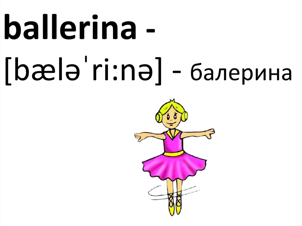 toys - [ˈtɔɪz]игрушки3. ballerina - [bæləˈri:nə] - балерина