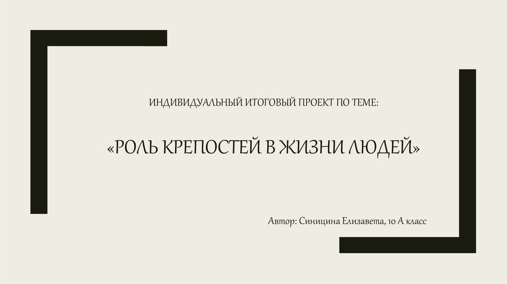 ИНДИВИДУАЛЬНЫЙ ИТОГОВЫЙ ПРОЕКТ ПО ТЕМЕ:«РОЛЬ КРЕПОСТЕЙ В ЖИЗНИ ЛЮДЕЙ»
