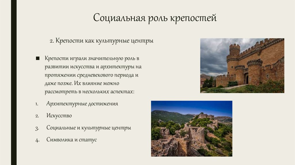 4. Рассмотреть культурные аспекты, связанные с крепостями, включая искусство, литературу и