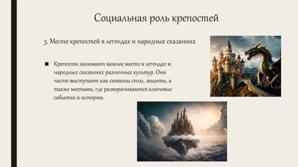 Социальная роль крепостей3. Место крепостей в легендах и народных сказаниях