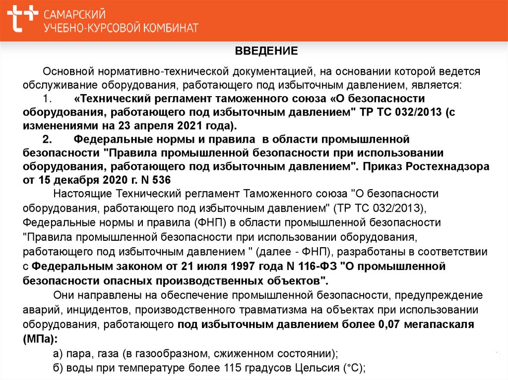 оборудования, работающего под избыточным давлением" ТР ТС 032/2013 (с