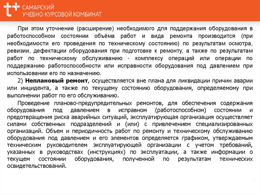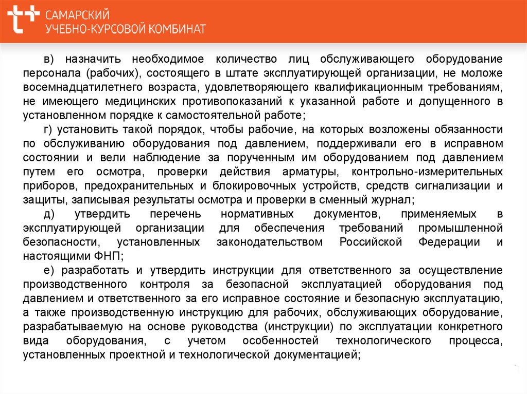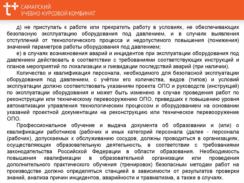 оборудования, работающего под избыточным давлением более 0,07 мегапаскаля