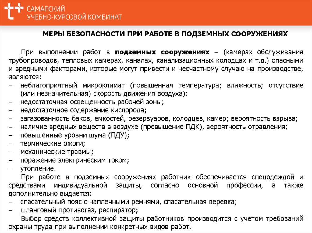 туннели, оборудование и материалы. При необходимости должны быть поставлены