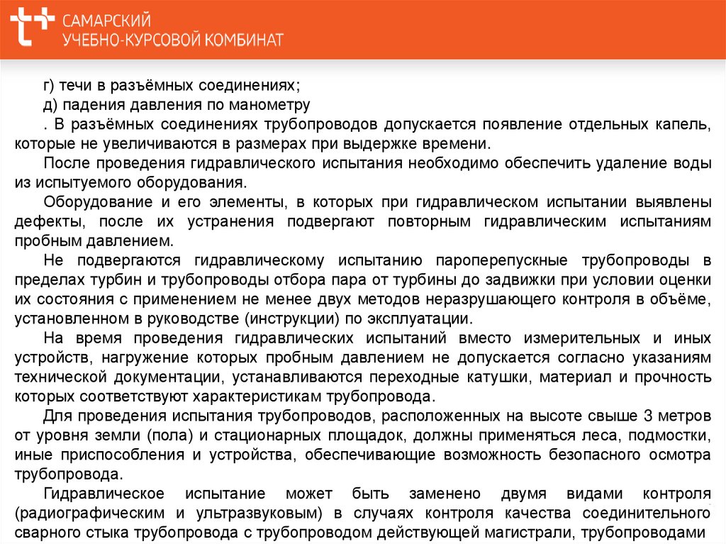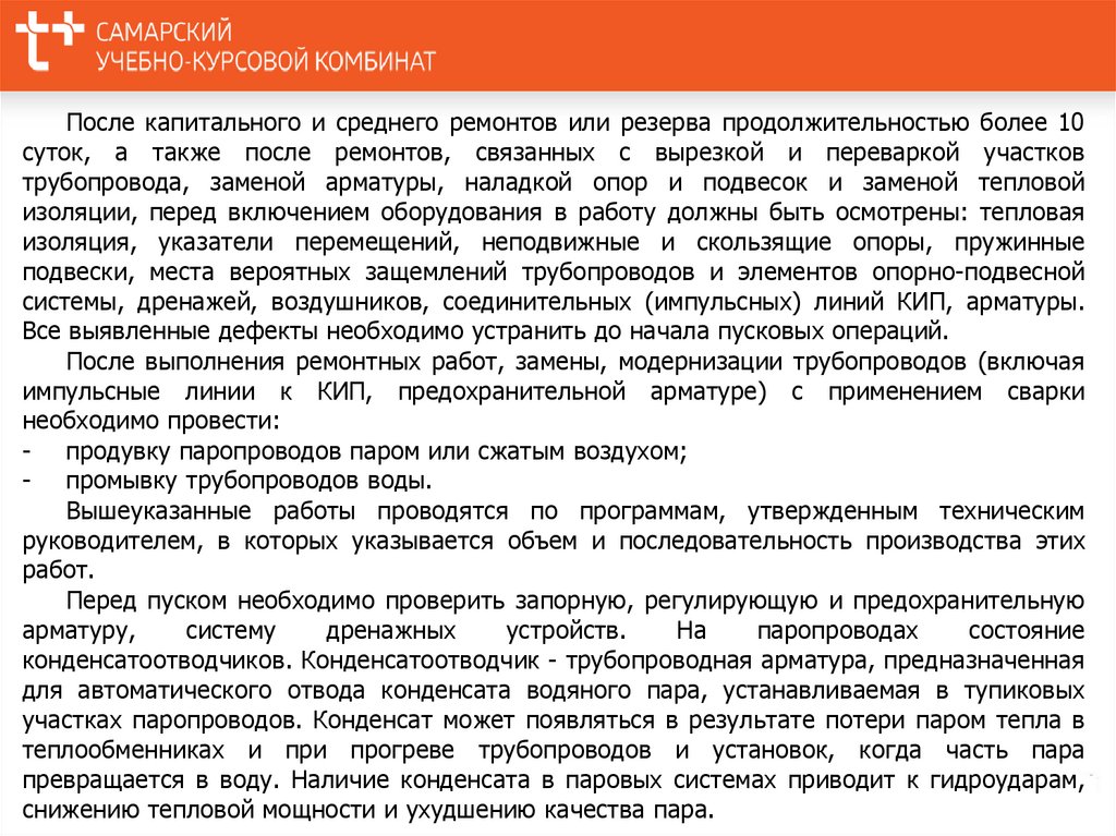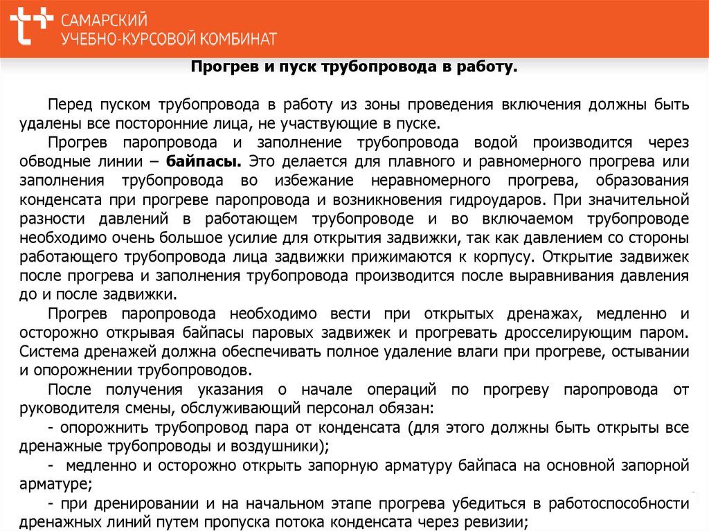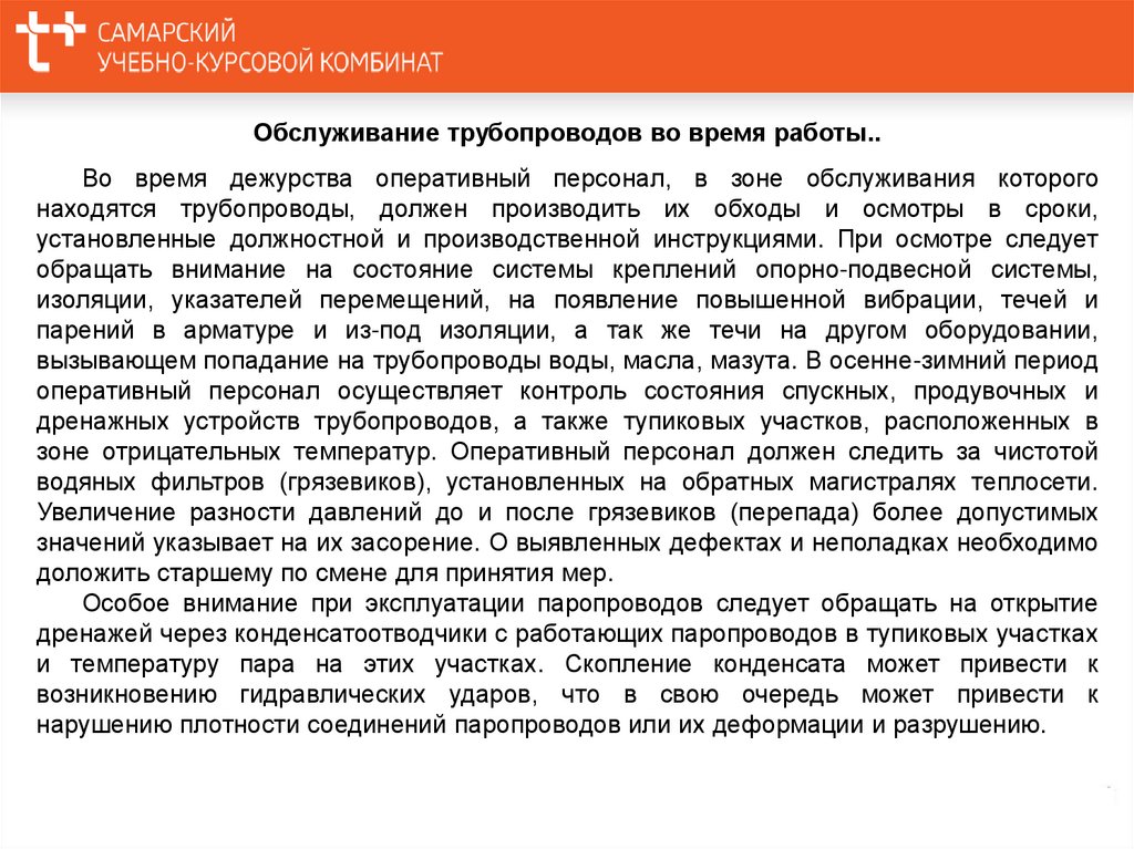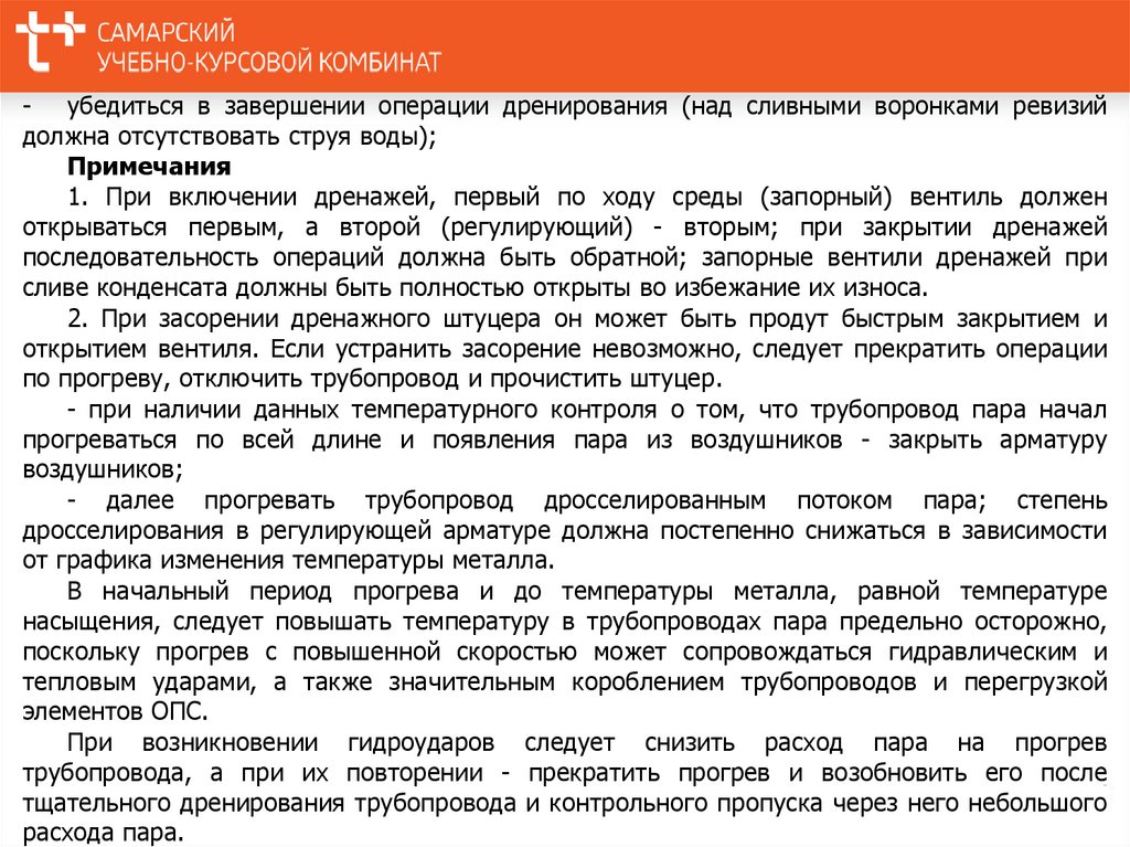 Обучение персонала, обслуживающего трубопроводы пара и горячей воды