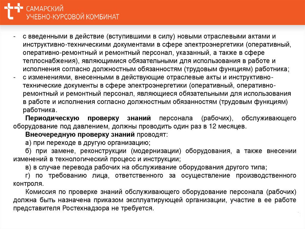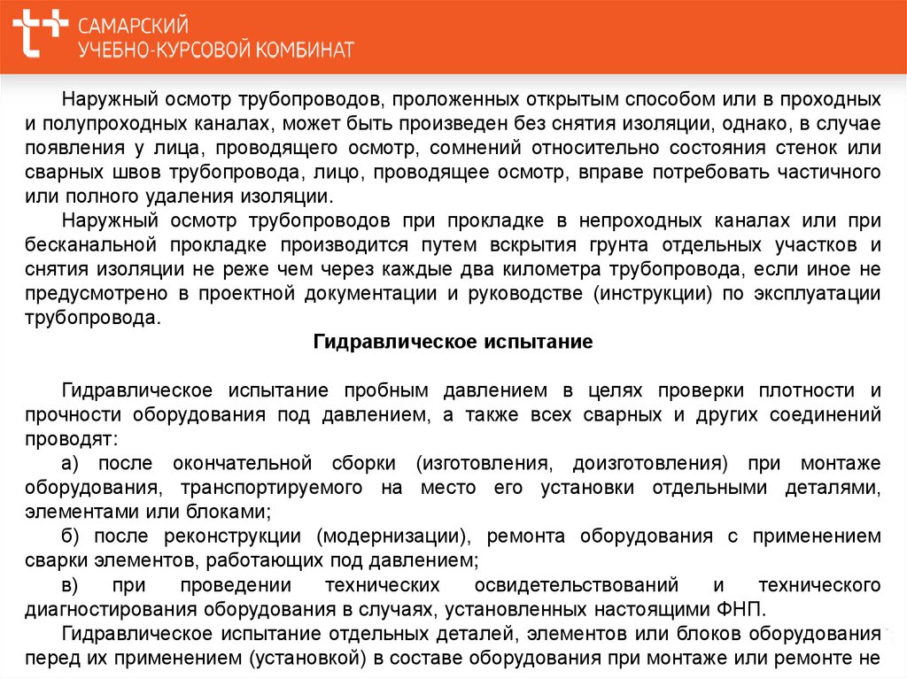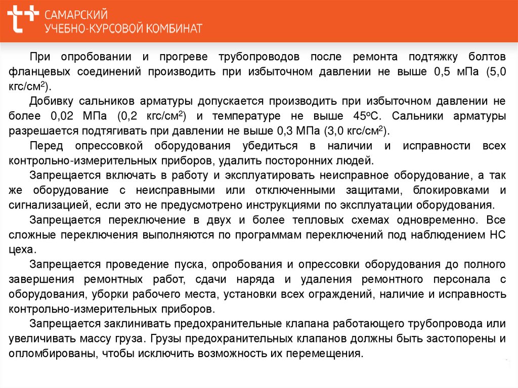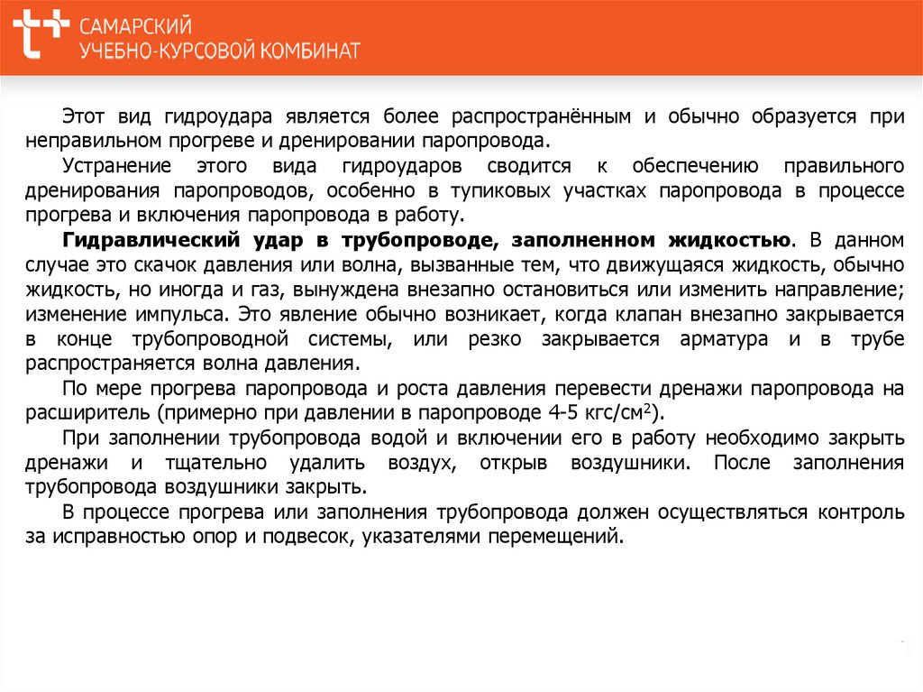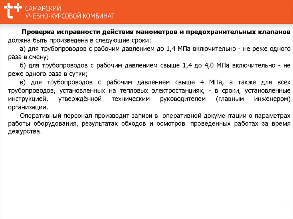 Обучение персонала, обслуживающего трубопроводы пара и горячей воды