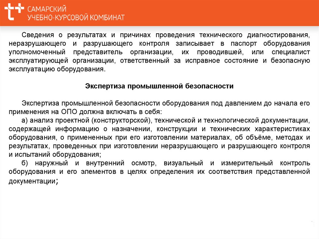 диагностировании и экспертизе промышленной безопасности оборудования,