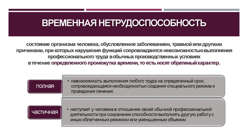 заболевания, травмы, отравления и иные состояния, связанные с временнойпотерей трудоспособности