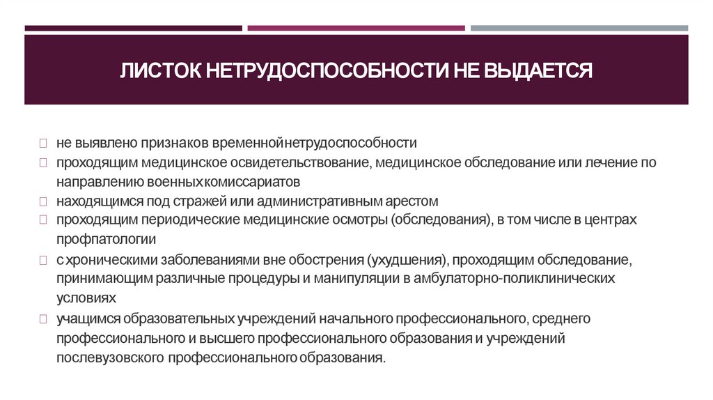 10. ЛИСТОК НЕТРУДОСПОСОБНОСТИ НЕ ВЫДАЕТСЯ
