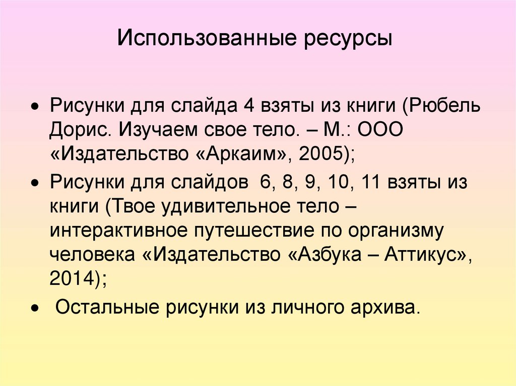 Использованные ресурсыРисунки для слайда 4 взяты из книги (Рюбель