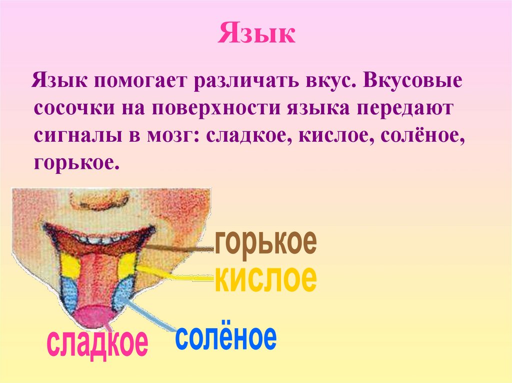 ЯзыкЯзык помогает различать вкус. Вкусовые