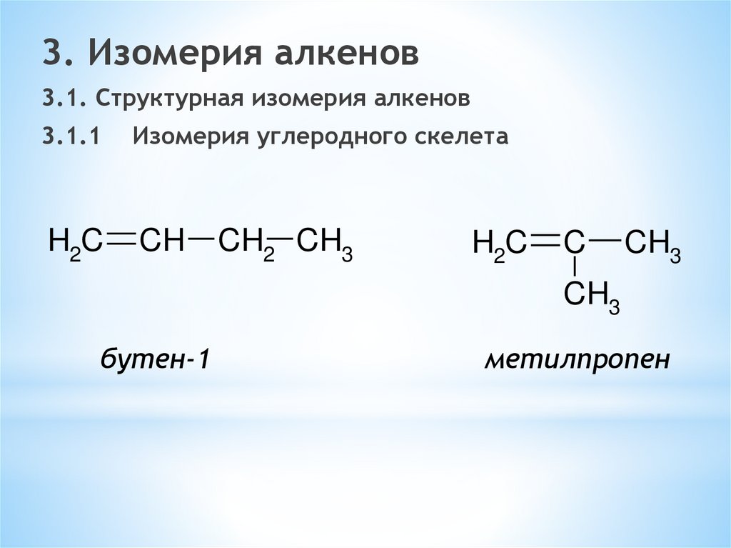 изомерией углеродного скелета.