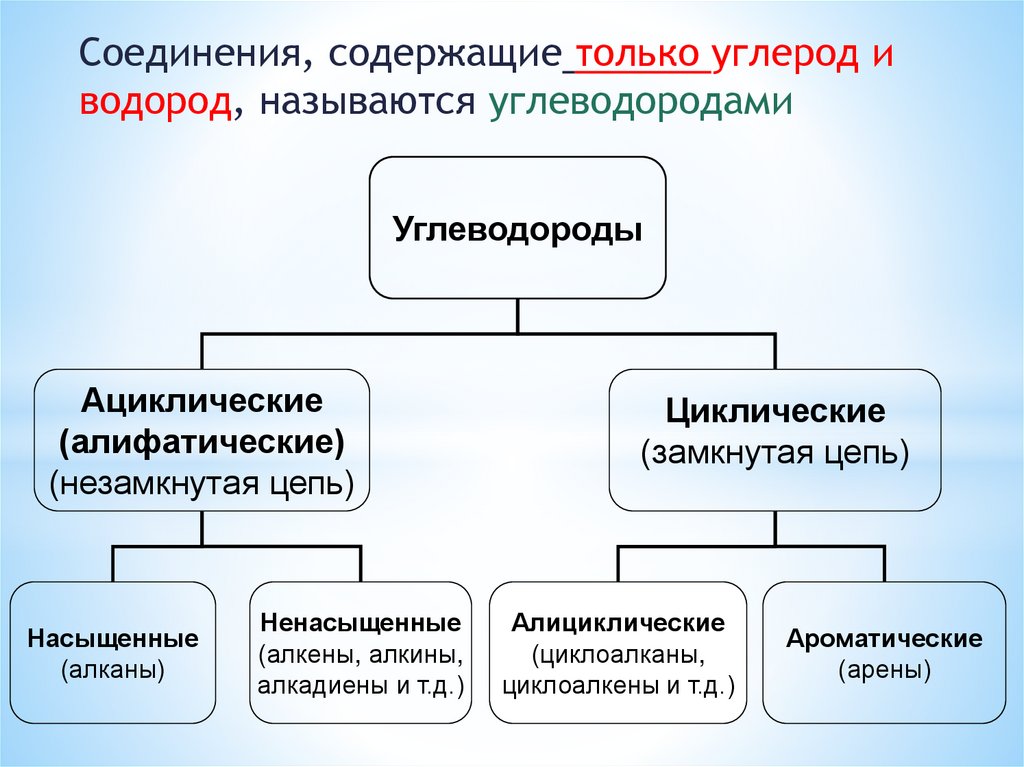 Соединения, содержащие только углерод иводород, называются углеводородами