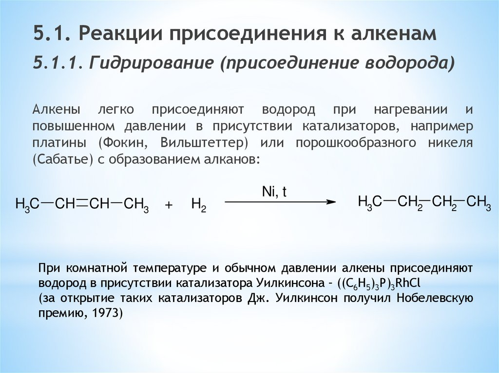 5.2. Реакции присоединения к алкинам5.2.1. Гидрирование – присоединение
