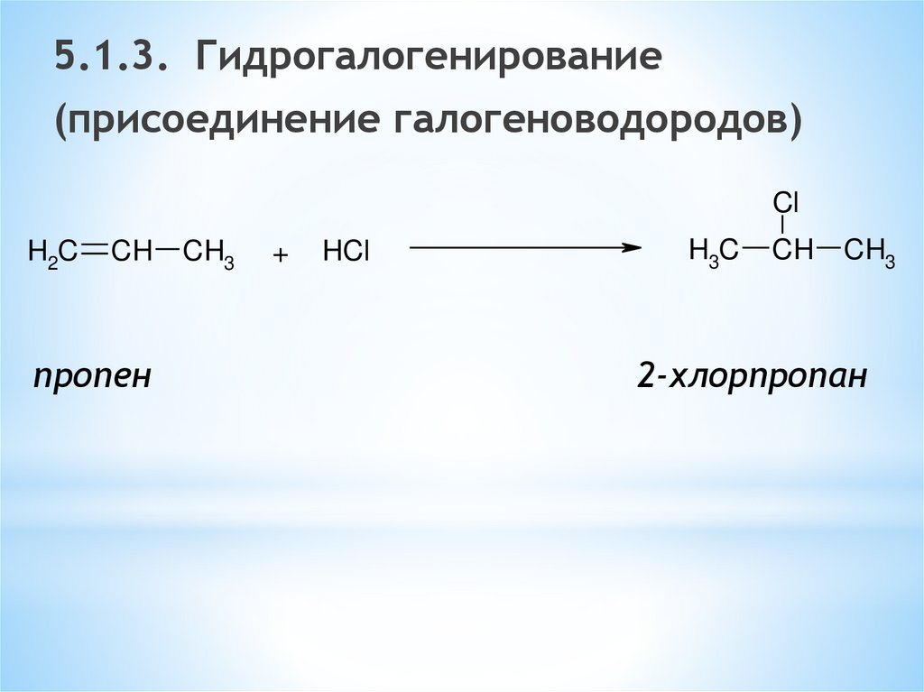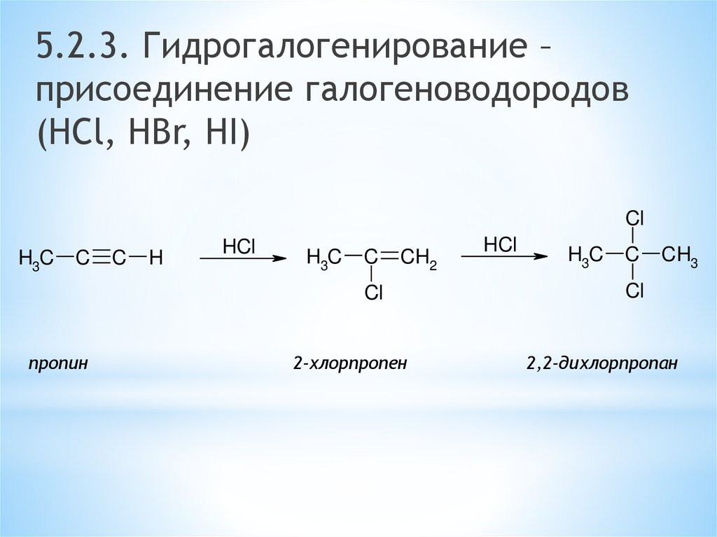 5.2.3. Гидрогалогенирование –присоединение галогеноводородов