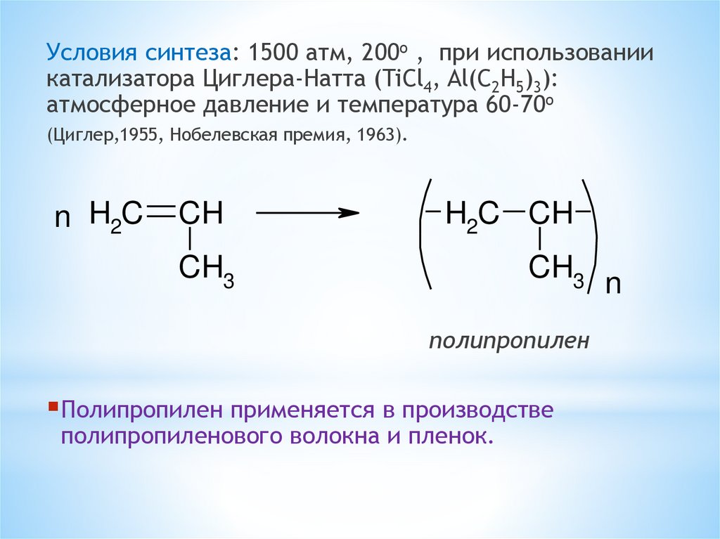 давлением 15 атм и при температуре всего 60-70oC (Реппе).