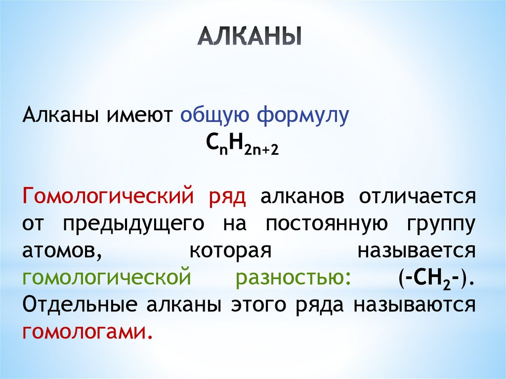 Гомологический ряд алканов отличается