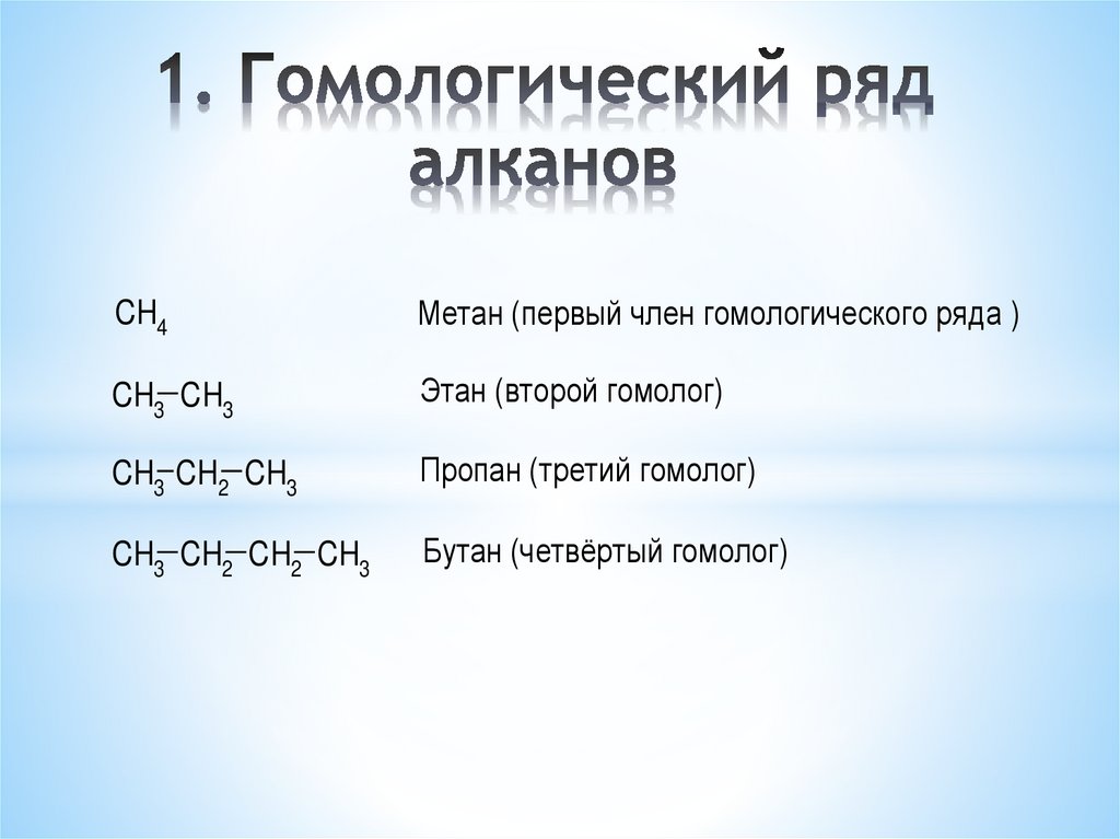 7. 1. Гомологический ряд алканов