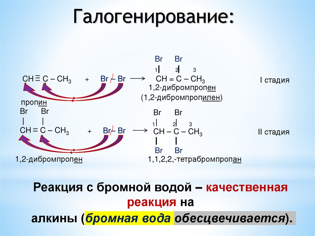 алкины (бромная вода обесцвечивается).