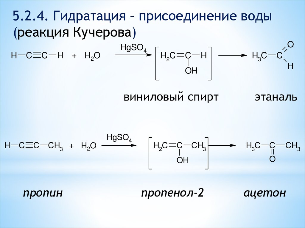 5.2.4. Гидратация – присоединение воды(реакция Кучерова)