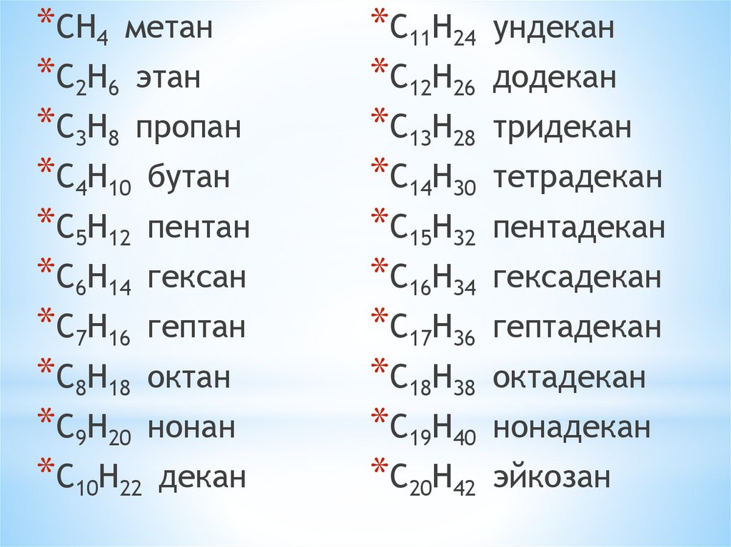 *CH4 метан*C2H6 этан