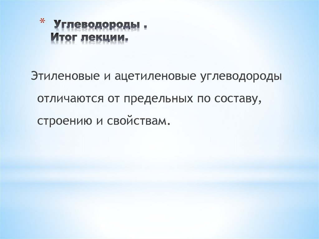 75. Углеводороды . Итог лекции.