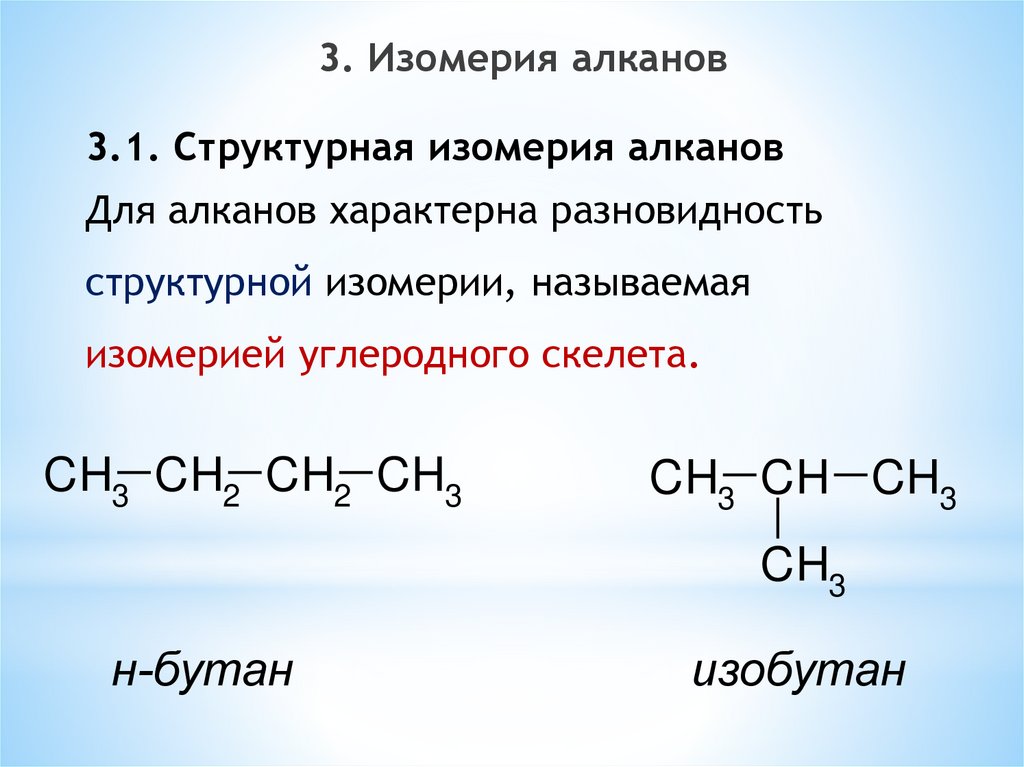 3. Изомерия алканов3.1. Структурная изомерия алканов