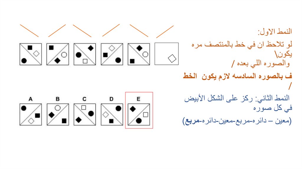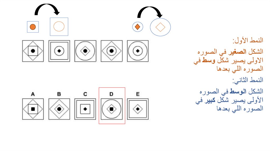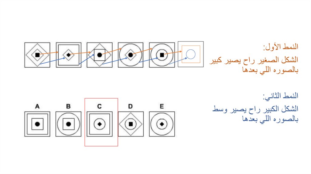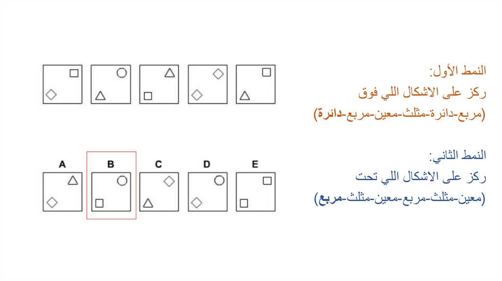 النمط األول :ركز على الشكل األسود في كلصوره طبعا ً الصوره األولى الدائره لونها اسود