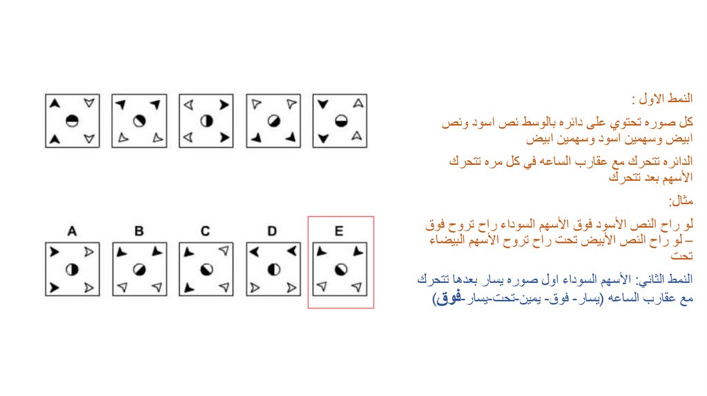 النمط الثاني :األسهم السوداء اول صوره يسار بعدها تتحرك
